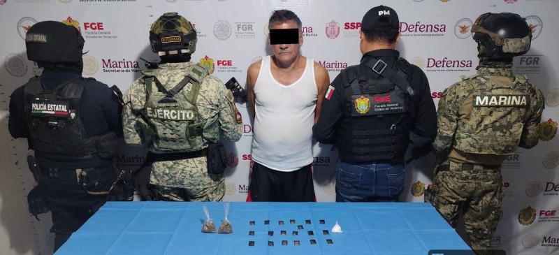 En apoyo a la Fiscalía General del Estado, durante cateos realizados en diversos municipios, fueron detenidas 35 personas, asegurándoles 334 dosis y cinco bolsitas de una sustancia con características del cristal; 42 dosis, 134 bolsitas, ocho bolsas, 20 gramos, seis cigarros y un paquete de hierba verde similar a la marihuana.