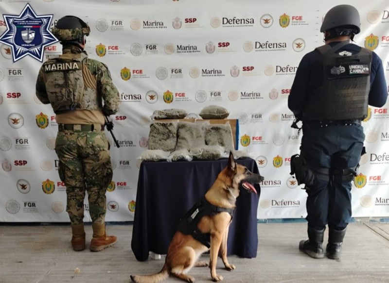 En operativo dentro de una empresa de paquetería exprés, Binomios Caninos localizaron y aseguraron 3.849 kilogramos de hierba con características similares a la marihuana.