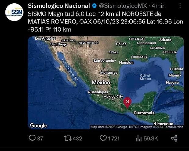 Por otro lado, se reportó otro movimiento de magnitud 4.0 en Matías Romero, Oaxaca, a las 6:25 horas. Este temblor ocurrió a 7 km al noroeste del municipio y tuvo una profundidad de 113 km.