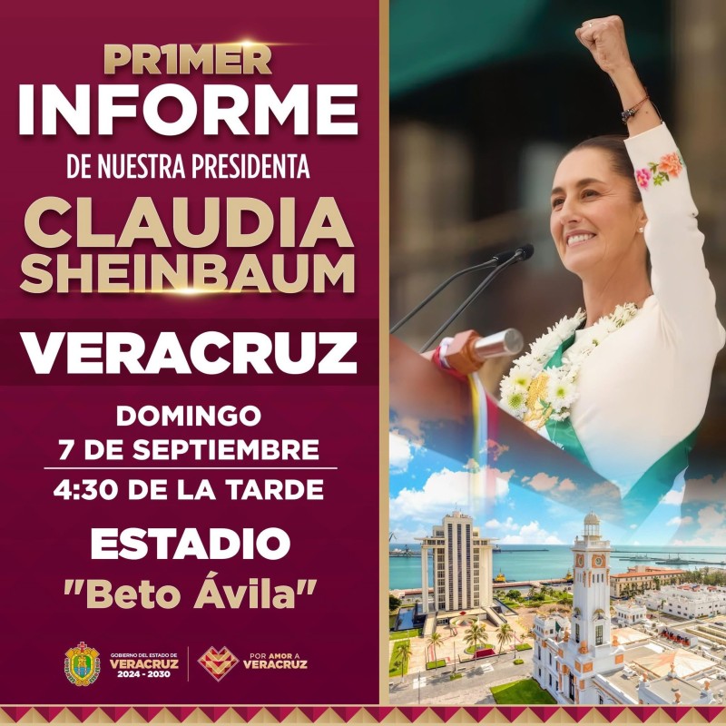La gobernadora de Veracruz, Rocío Nahle García, anunció que la presidenta de México, Claudia Sheinbaum Pardo, visitará la entidad para rendir su informe ante la ciudadanía.