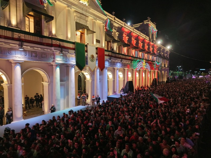 La titular del Ejecutivo, Rocío Nahle, salió al balcón central del Palacio de Gobierno de Veracruz. Ante la multitud reunida en la plaza Lerdo, la Gobernadora encabezó la ceremonia del Grito de Independencia.