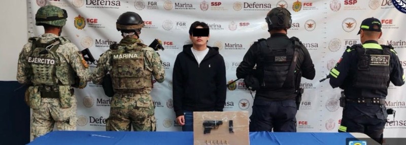 Asimismo, durante cateos en apoyo a la Fiscalía General del Estado se detuvieron a cuatro personas y se aseguraron cuatro armas de fuego cortas y dos largas, cargadores, cartuchos útiles; tres dosis y una bolsita de presunto cristal, 15 bolsitas y una bolsa de hierba seca similar a la marihuana, teléfonos celulares, placas vehiculares, electrodomésticos y equipo táctico, así como dos motocicletas y un tractocamión con reporte de robo.