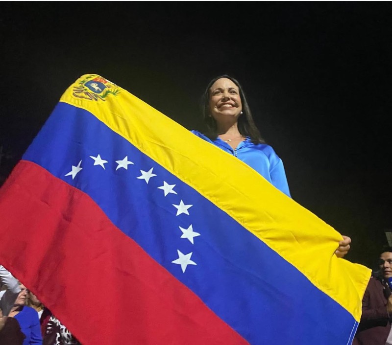 La Premio Nobel venezolana María Corina Machado celebra la caída de Maduro