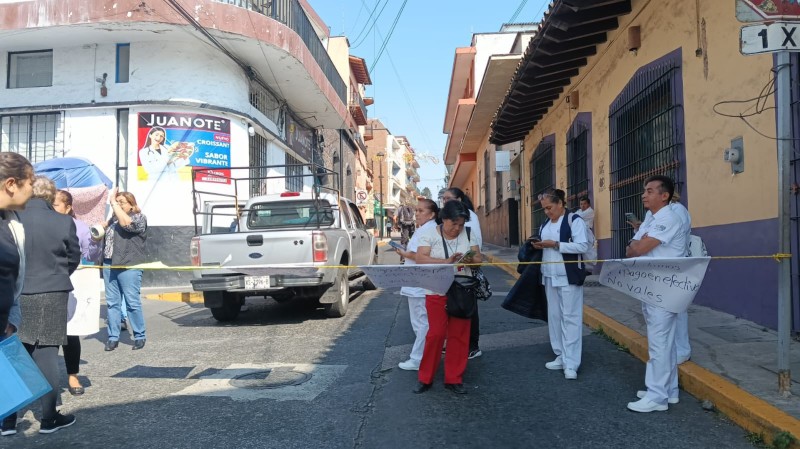 Se manifiestan por falta de bonos a trabajadores de salud en Veracruz.