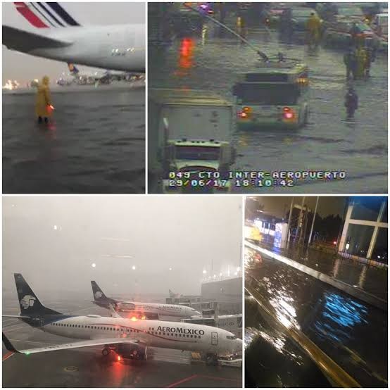 AICM cancela operaciones por inundaciones tras fuertes lluvias este martes